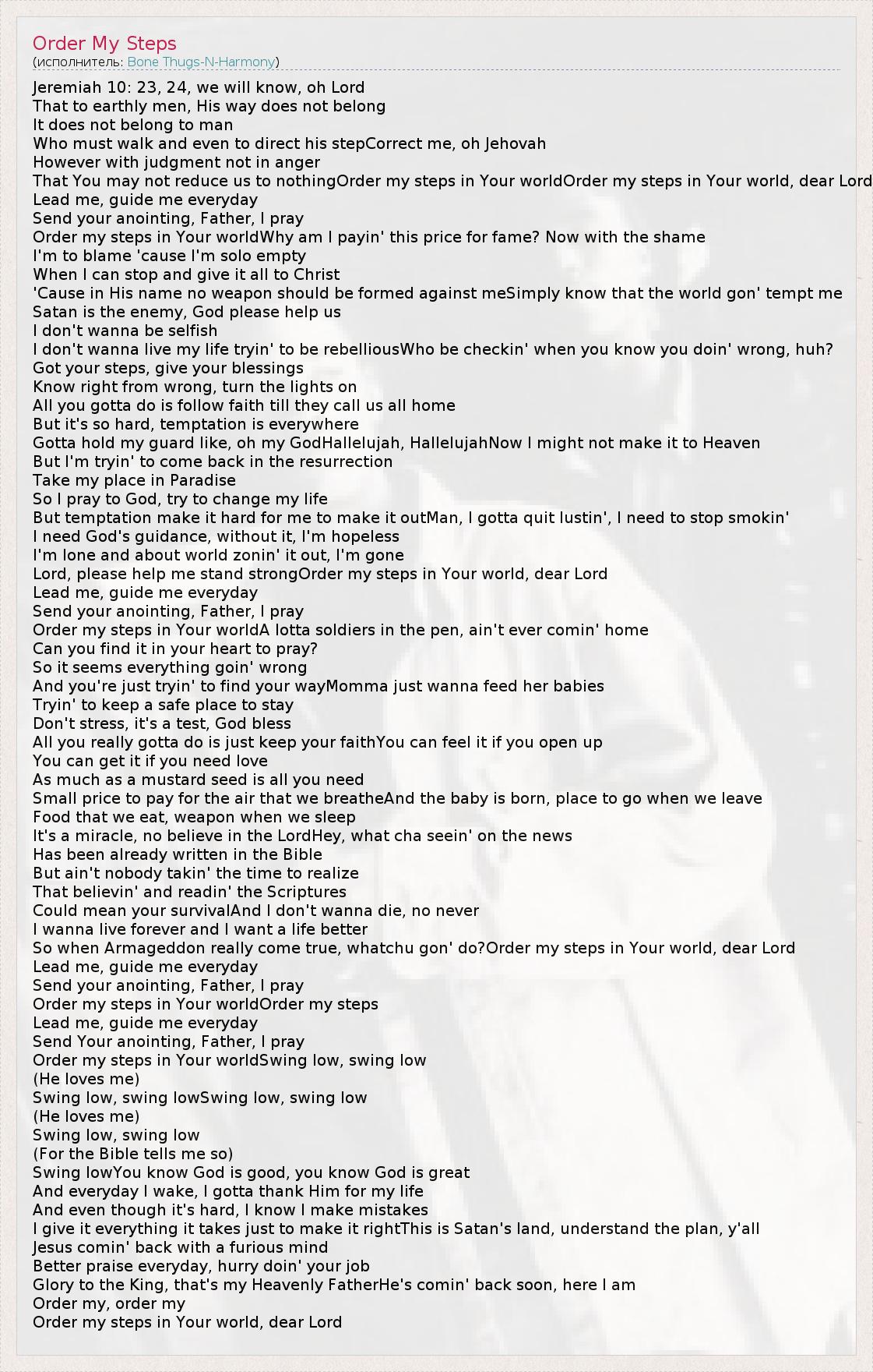 А как ты думаешь, о чем песня "Order My Steps" ?