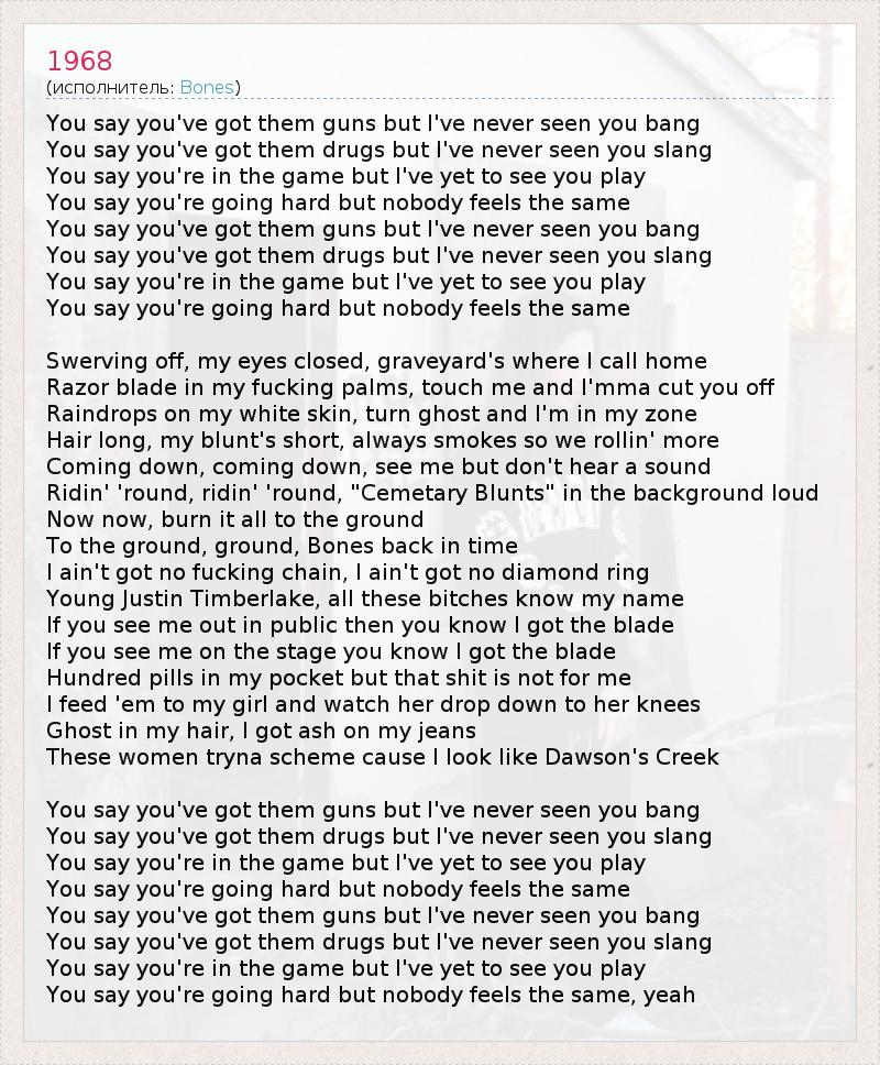 1 – Под игрой подразумевается рэп. Среди рэперов принято называть жанр игрой. Т.е. Бонс не считает, тех о ком он говорит в припеве, настоящими рэперами.