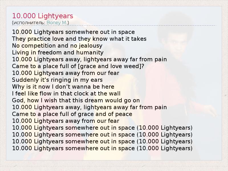 А как ты думаешь, о чем песня "10.000 Lightyears" ?