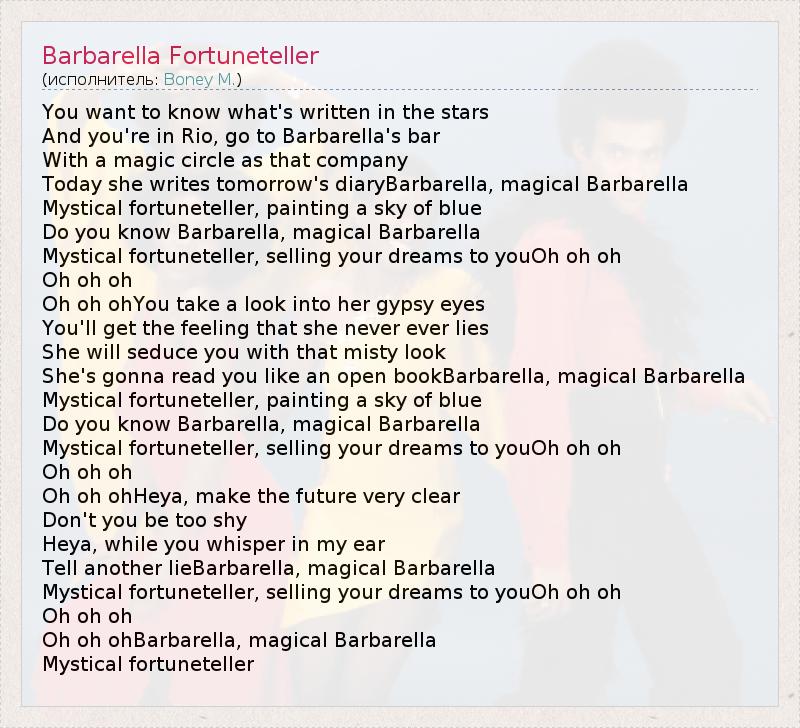 ГлавнаяИсполнителиBoney M.Barbarella Fortuneteller
