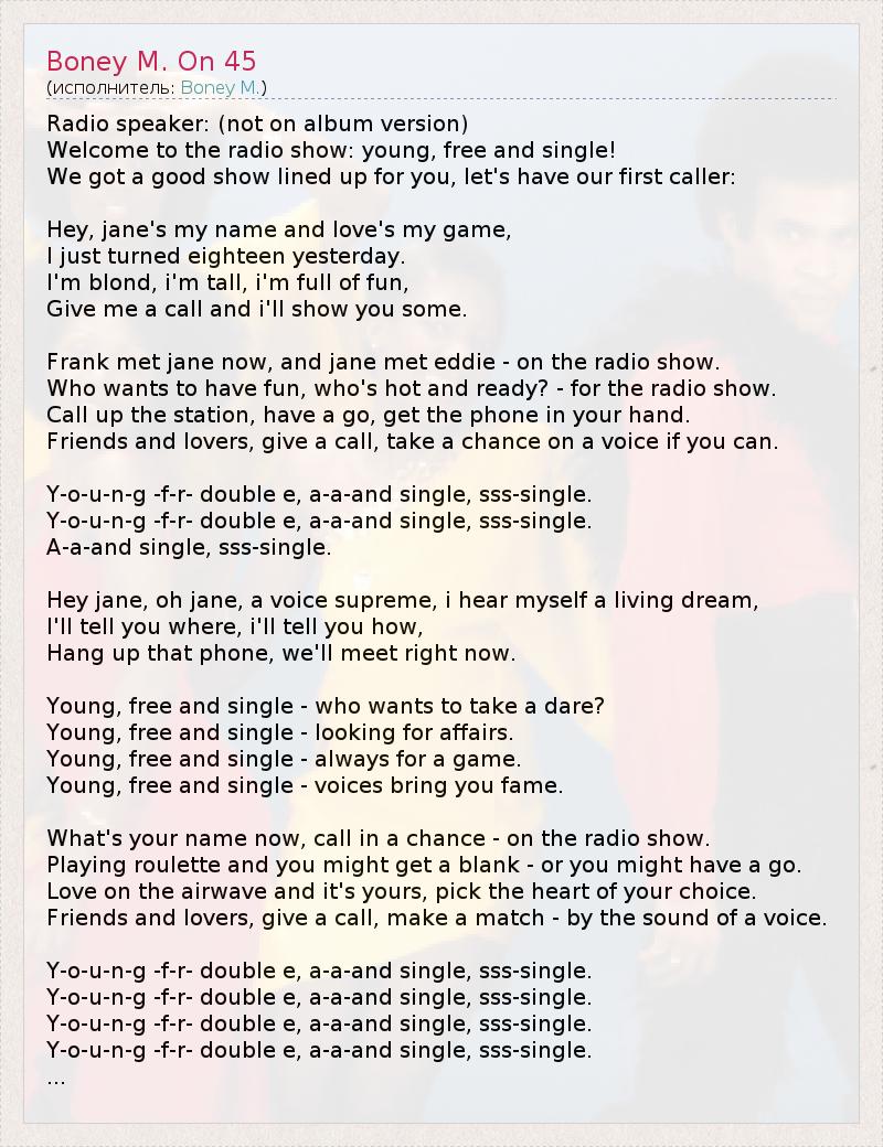 А как ты думаешь, о чем песня "Boney M. On 45" ?