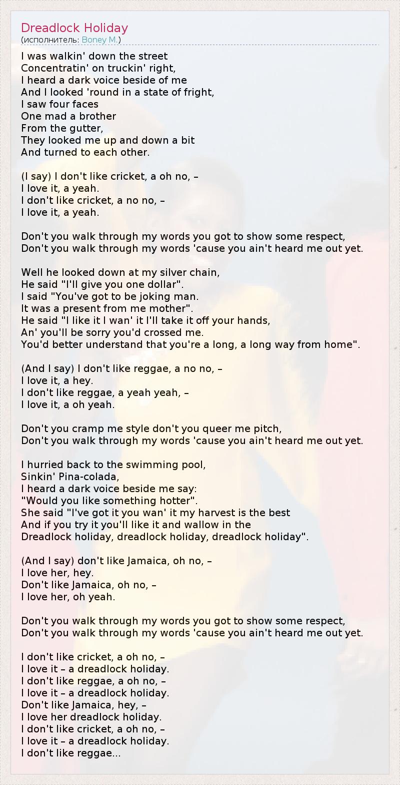 А как ты думаешь, о чем песня "Dreadlock Holiday" ?
