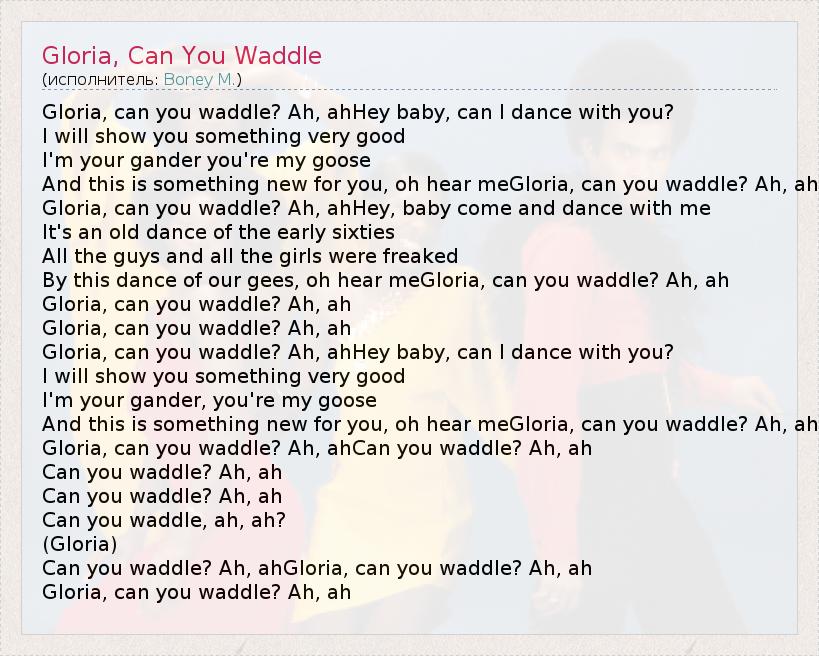 ГлавнаяИсполнителиBoney M.Gloria, Can You Waddle