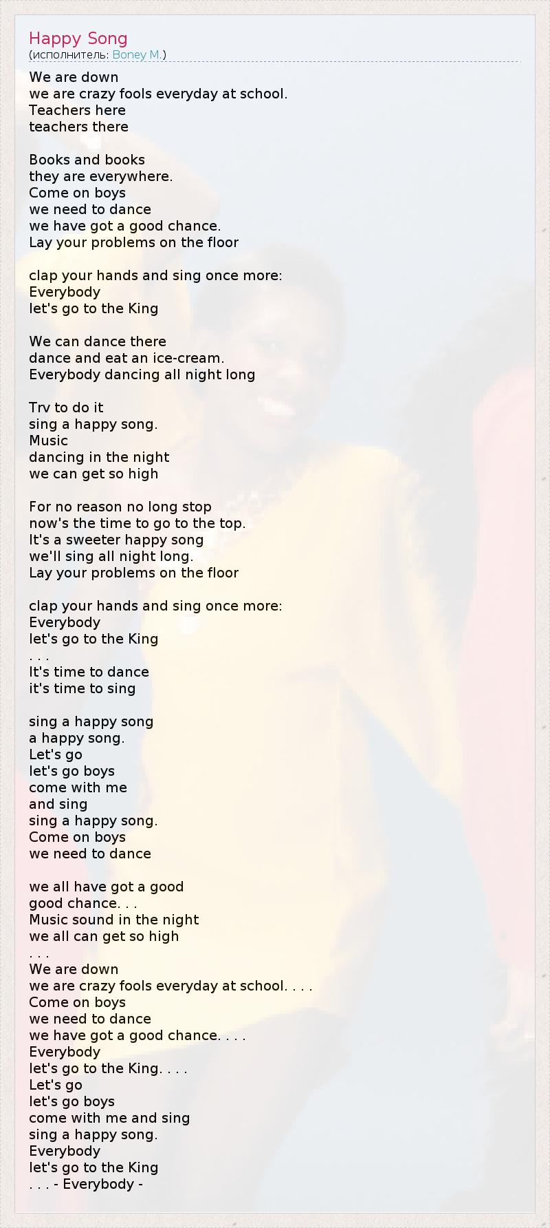 Это интересно:Boney M. — немецкая (изначально западно-германская) диско-группа, созданная в 1975 музыкальным продюсером Фрэнком Фарианом.Западногерманский продюсер Фрэнк Фариан, экспериментируя с новым стилем диско, записывает необычную композицию Baby Do You Wanna Bump? в конце 1974 и публикует её под псевдонимом Boney M., по имени героя популярного тогда австралийского детективного сериала. В композиции он использовал... продолжение