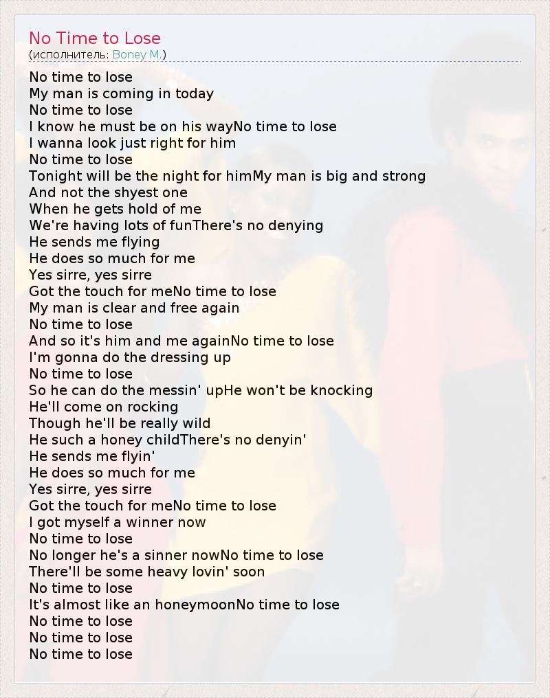 А как ты думаешь, о чем песня "No Time to Lose" ?