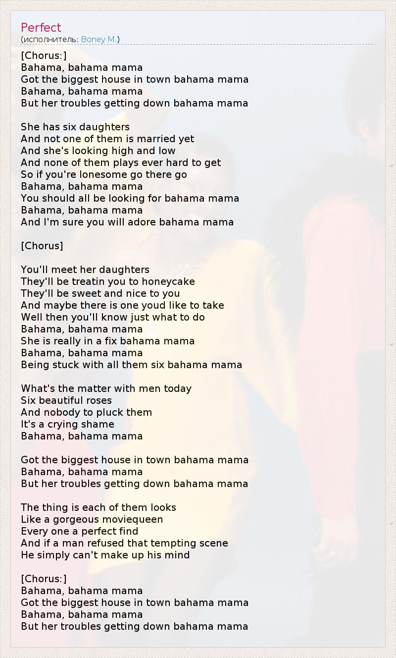 * - "Bahama Mama" (мамаша с Багам) -  нарицательное имя, использующееся для того, чтобы описать толстушку-мамашу, у которой много детей.