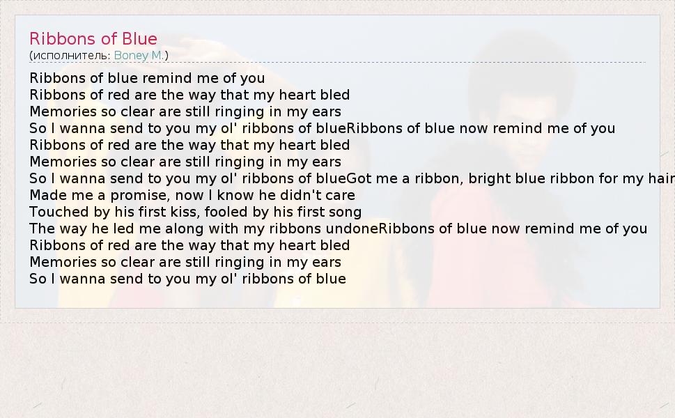 А как ты думаешь, о чем песня "Ribbons of Blue" ?