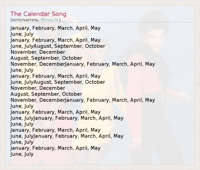 А как ты думаешь, о чем песня "The Calendar Song" ?