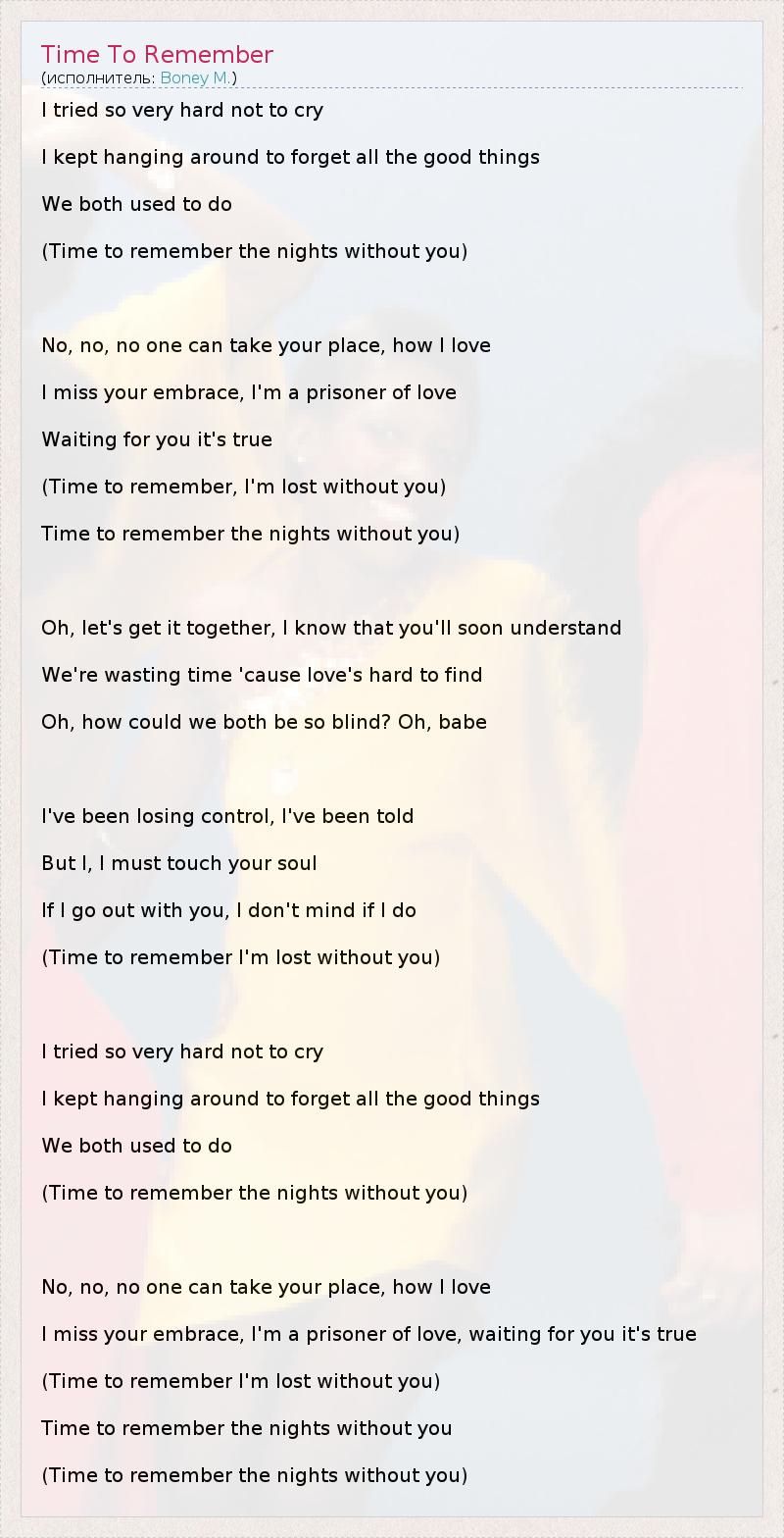 А как ты думаешь, о чем песня "Time To Remember" ?
