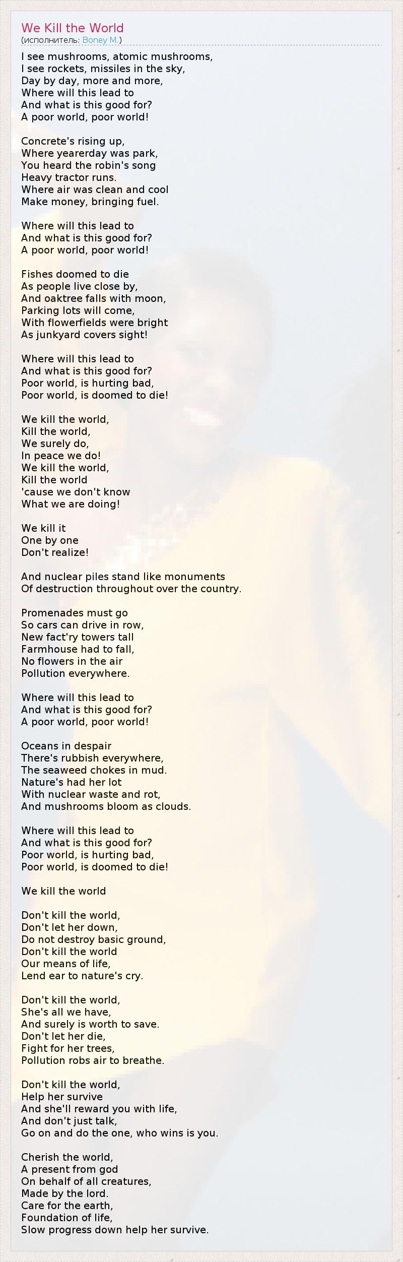 А как ты думаешь, о чем песня "We Kill the World" ?