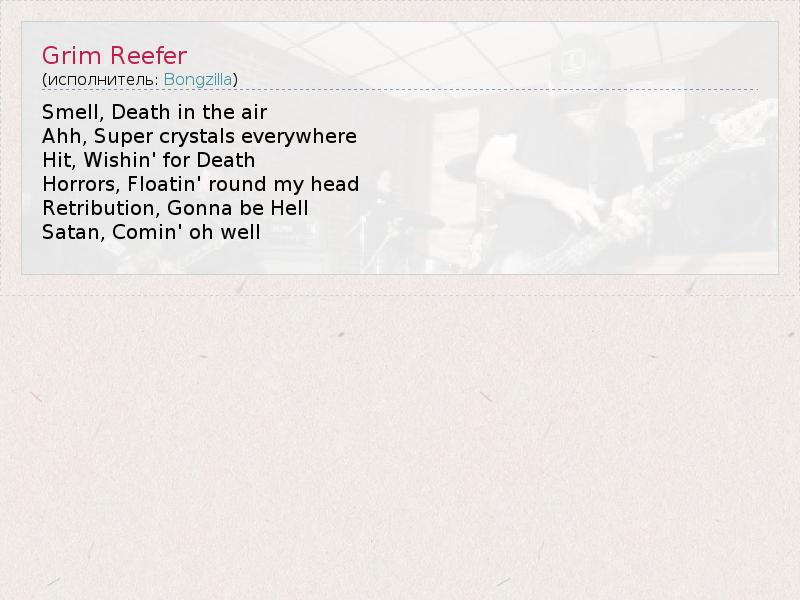 А как ты думаешь, о чем песня "Grim Reefer" ?