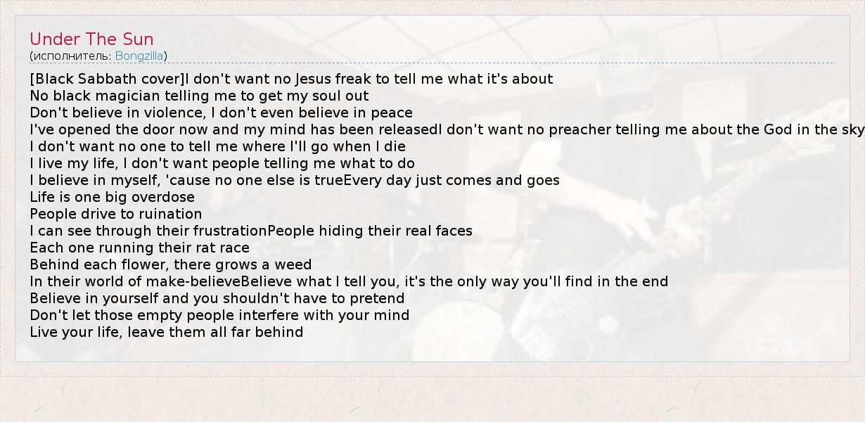 А как ты думаешь, о чем песня "Under The Sun" ?