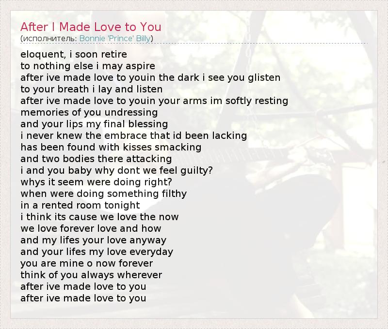 А как ты думаешь, о чем песня "After I Made Love to You" ?