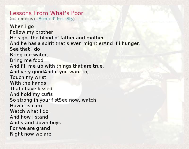 А как ты думаешь, о чем песня "Lessons From What's Poor" ?
