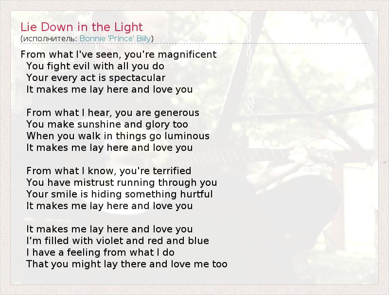А как ты думаешь, о чем песня "Lie Down in the Light" ?