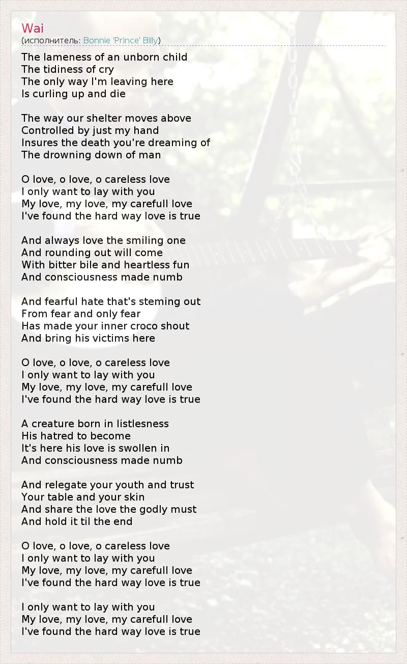 My love, my love, my carefull love