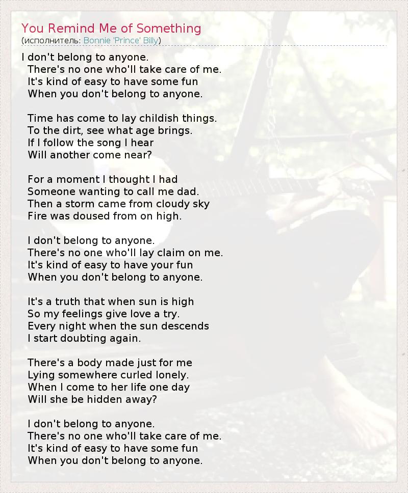 А как ты думаешь, о чем песня "You Remind Me of Something" ?