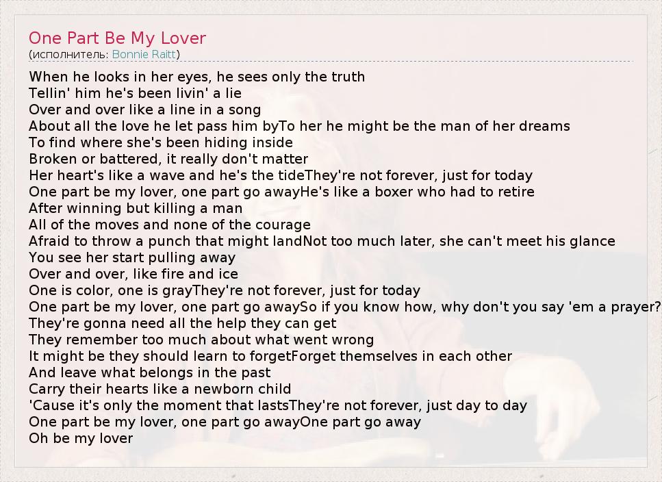 А как ты думаешь, о чем песня "One Part Be My Lover" ?