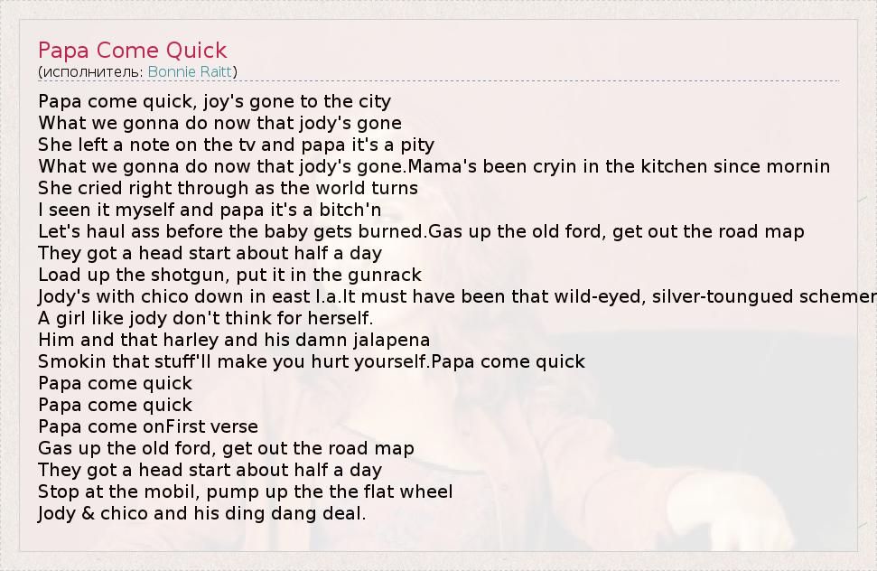А как ты думаешь, о чем песня "Papa Come Quick" ?
