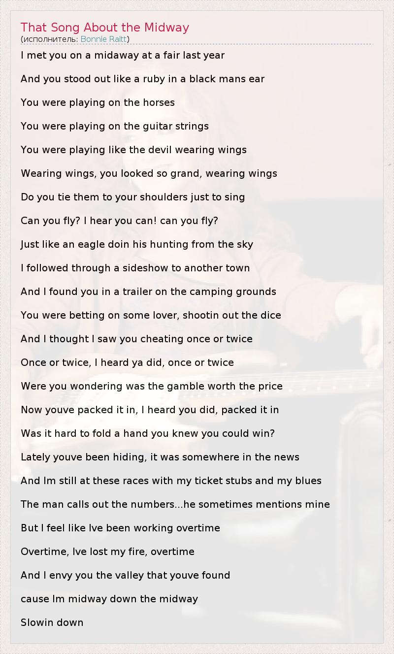ГлавнаяИсполнителиBonnie RaittThat Song About the Midway
