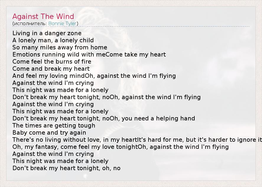 А как ты думаешь, о чем песня "Against The Wind" ?