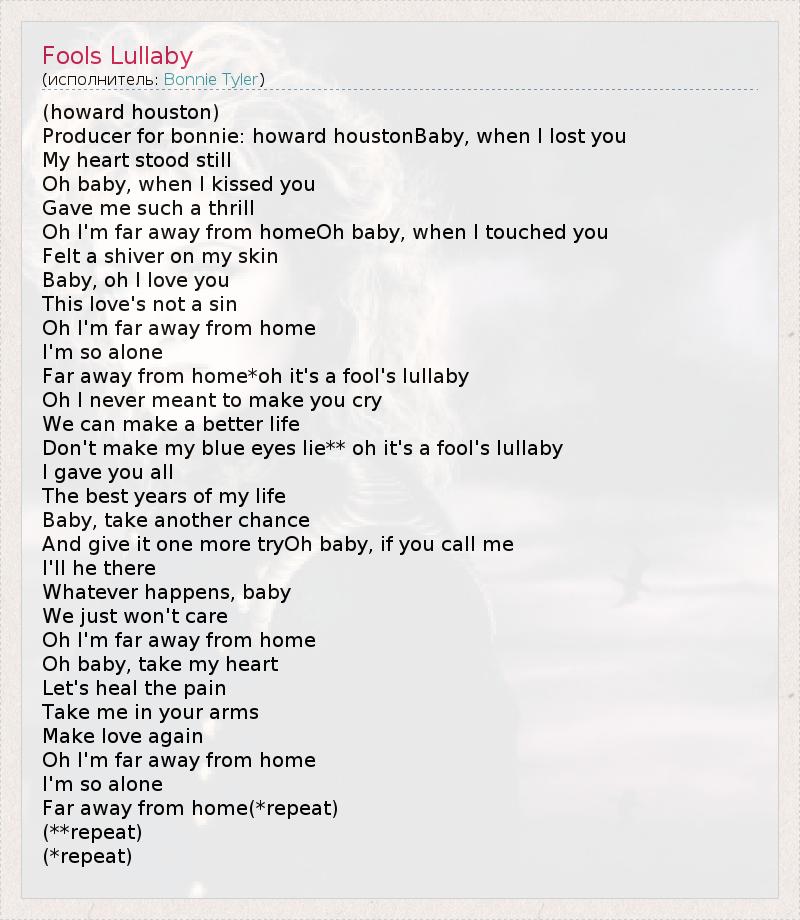 Far away from home*oh it's a fool's lullaby