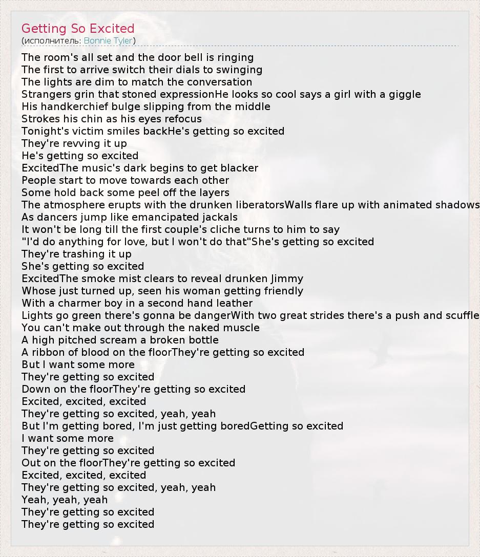 А как ты думаешь, о чем песня "Getting So Excited" ?