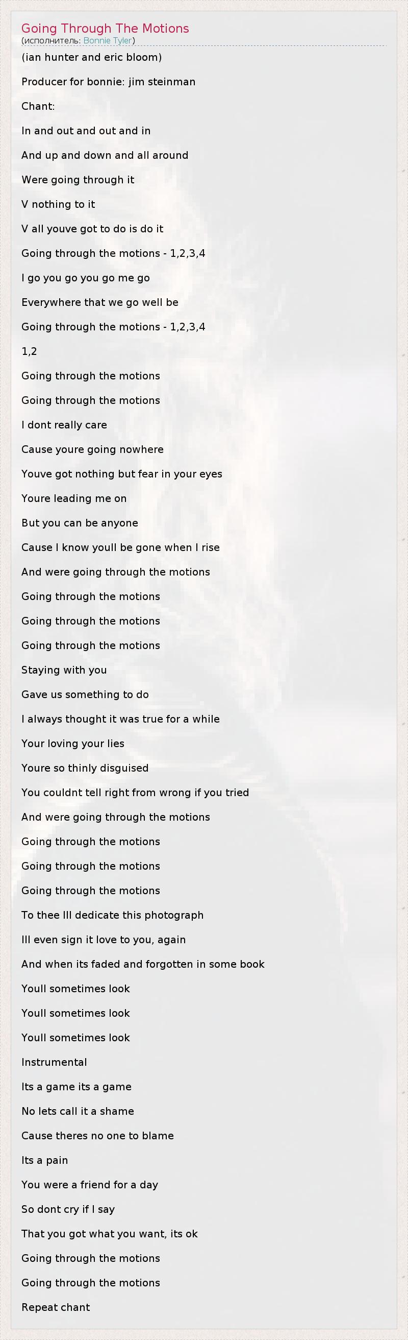 ГлавнаяИсполнителиBonnie TylerGoing Through The Motions