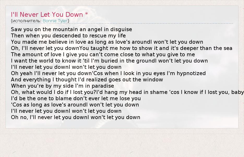 А как ты думаешь, о чем песня "I'll Never Let You Down *" ?
