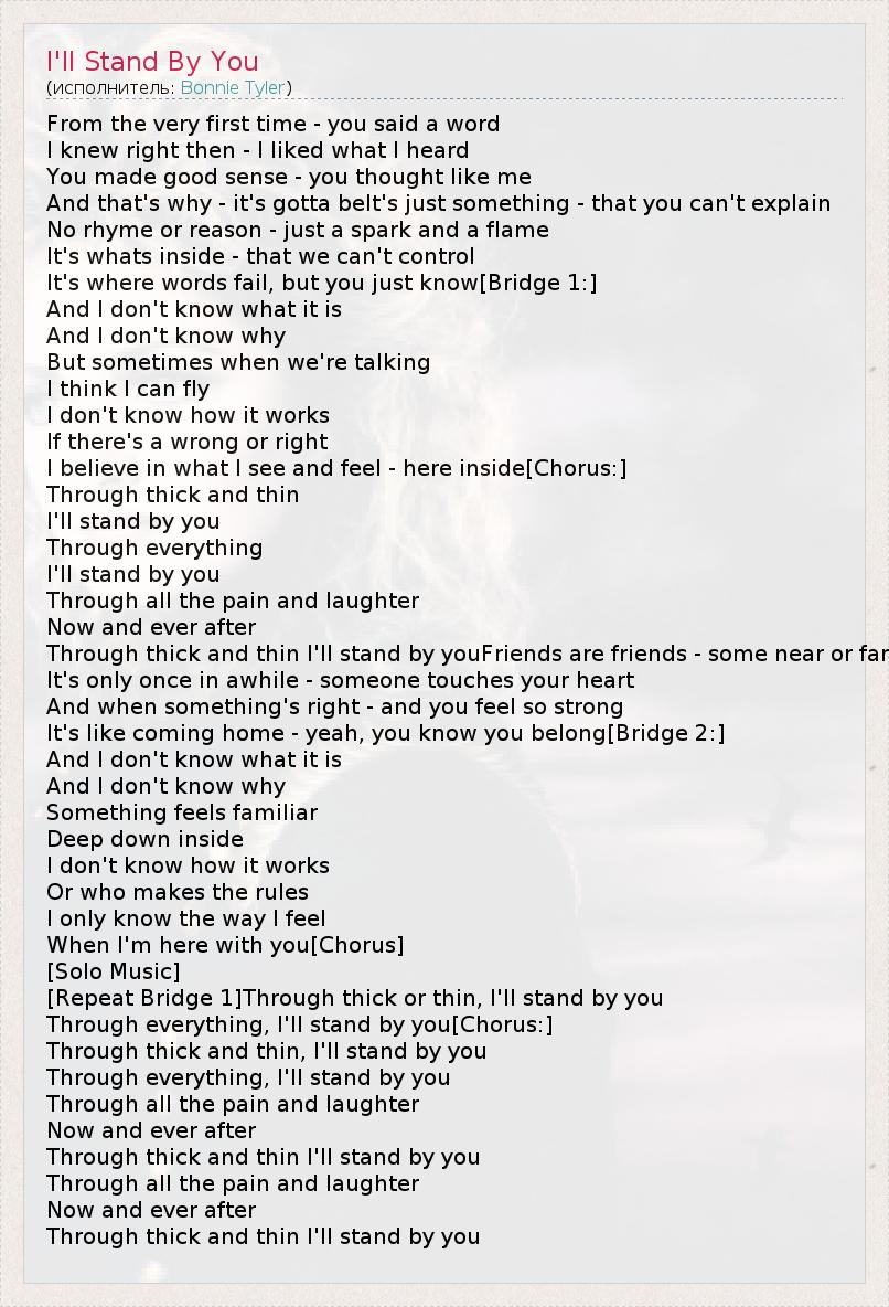 А как ты думаешь, о чем песня "I'll Stand By You" ?