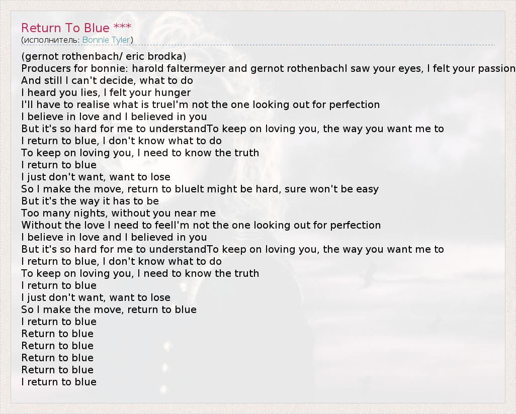 А как ты думаешь, о чем песня "Return To Blue ***" ?