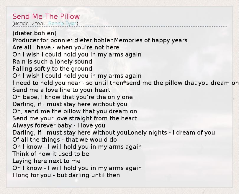 А как ты думаешь, о чем песня "Send Me The Pillow" ?