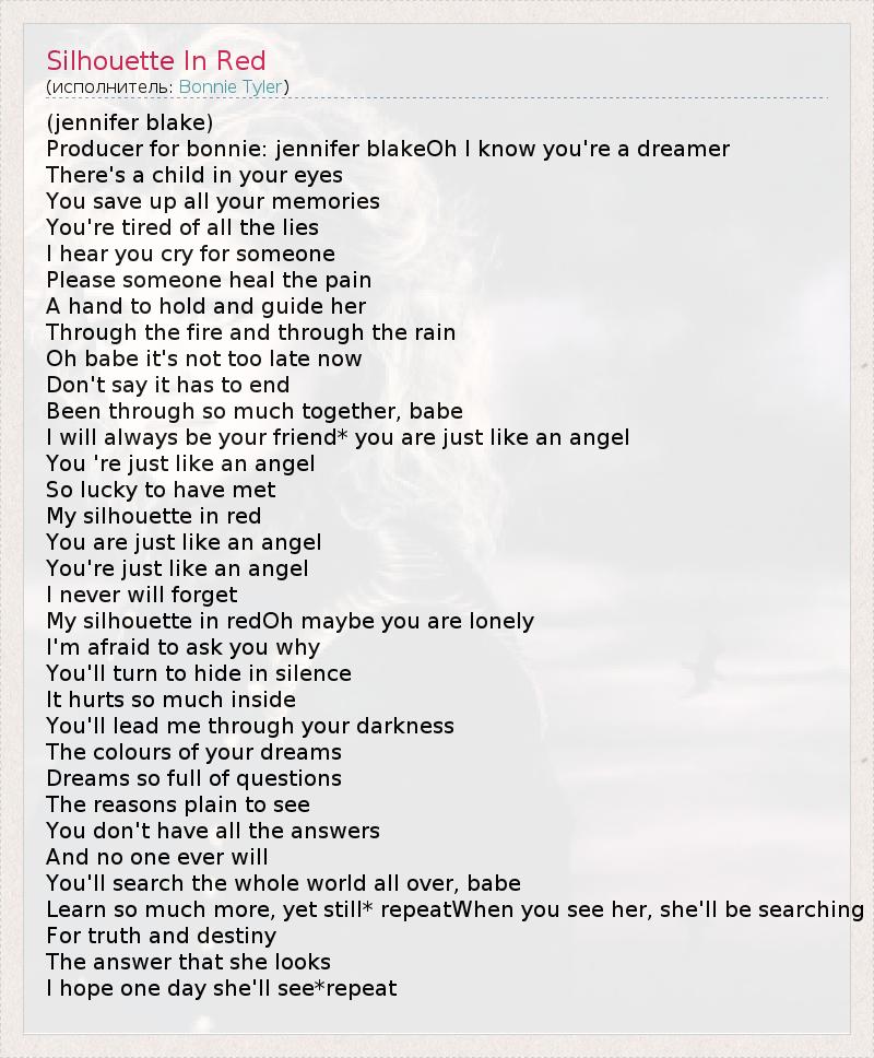 А как ты думаешь, о чем песня "Silhouette In Red" ?