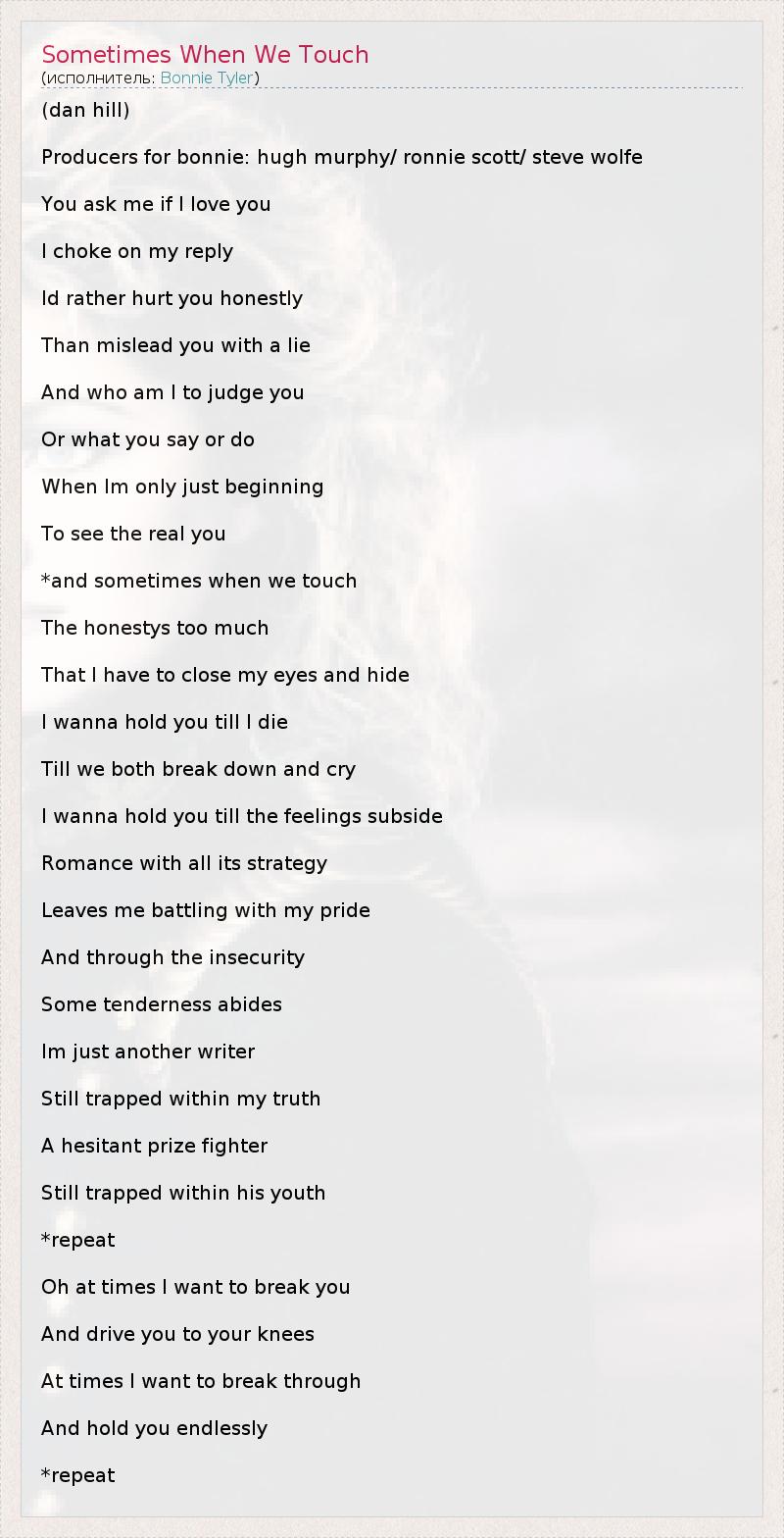 А как ты думаешь, о чем песня "Sometimes When We Touch" ?