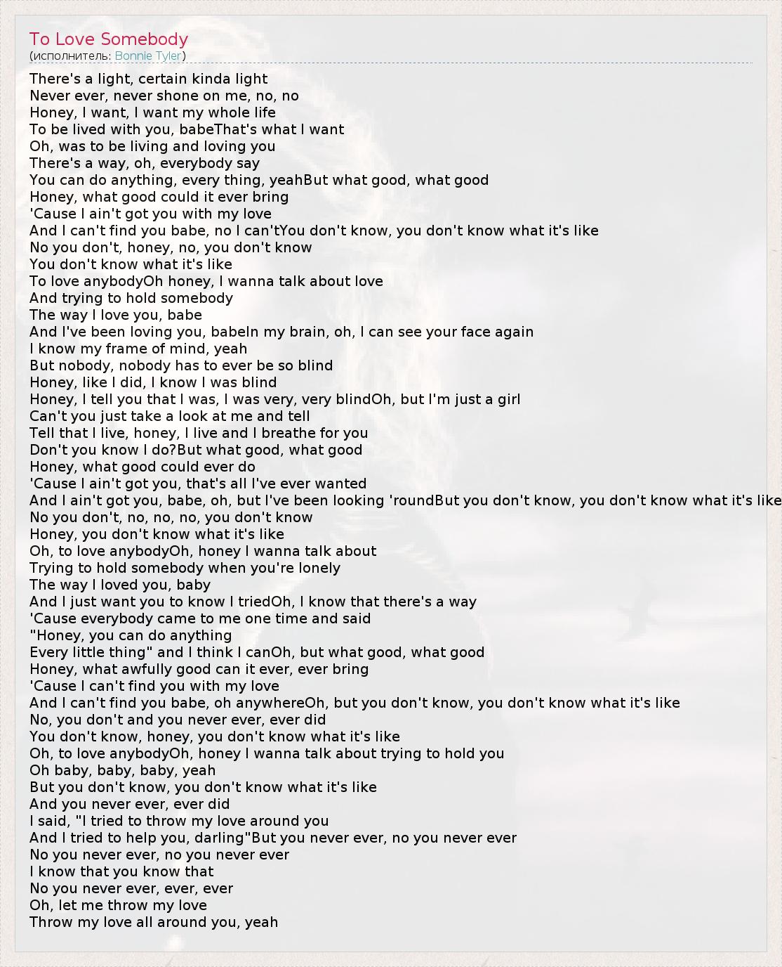 To Love Somebody
