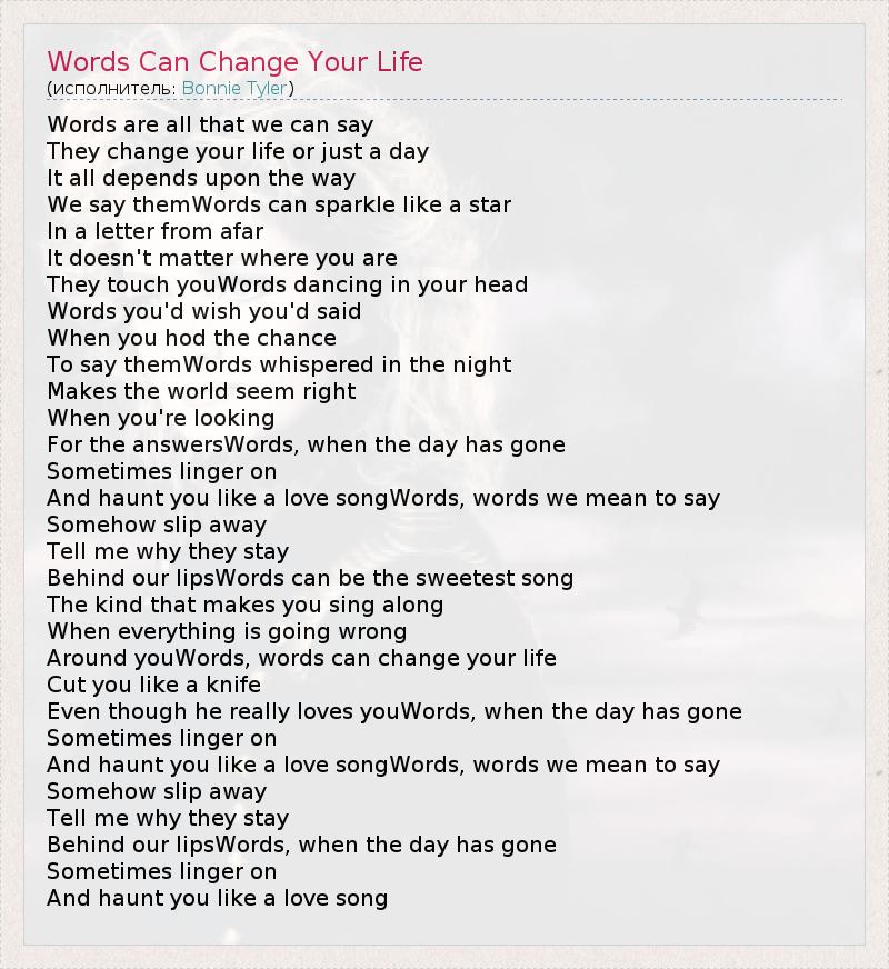 А как ты думаешь, о чем песня "Words Can Change Your Life" ?