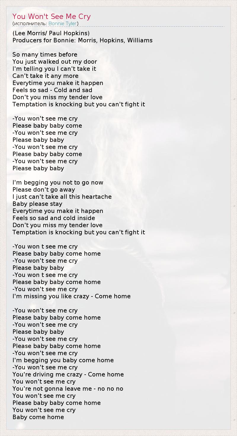 А как ты думаешь, о чем песня "You Won't See Me Cry" ?