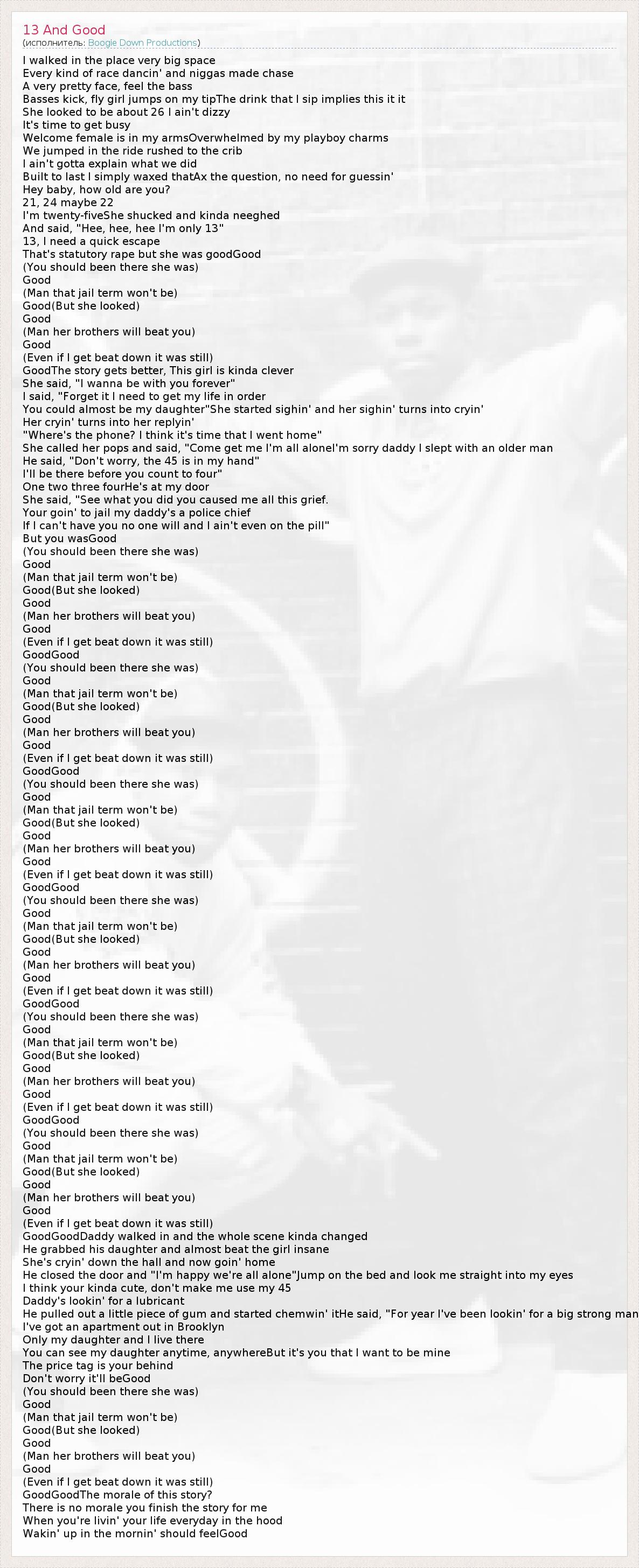 She called her pops and said, "Come get me I'm all aloneI'm sorry daddy I slept with an older man