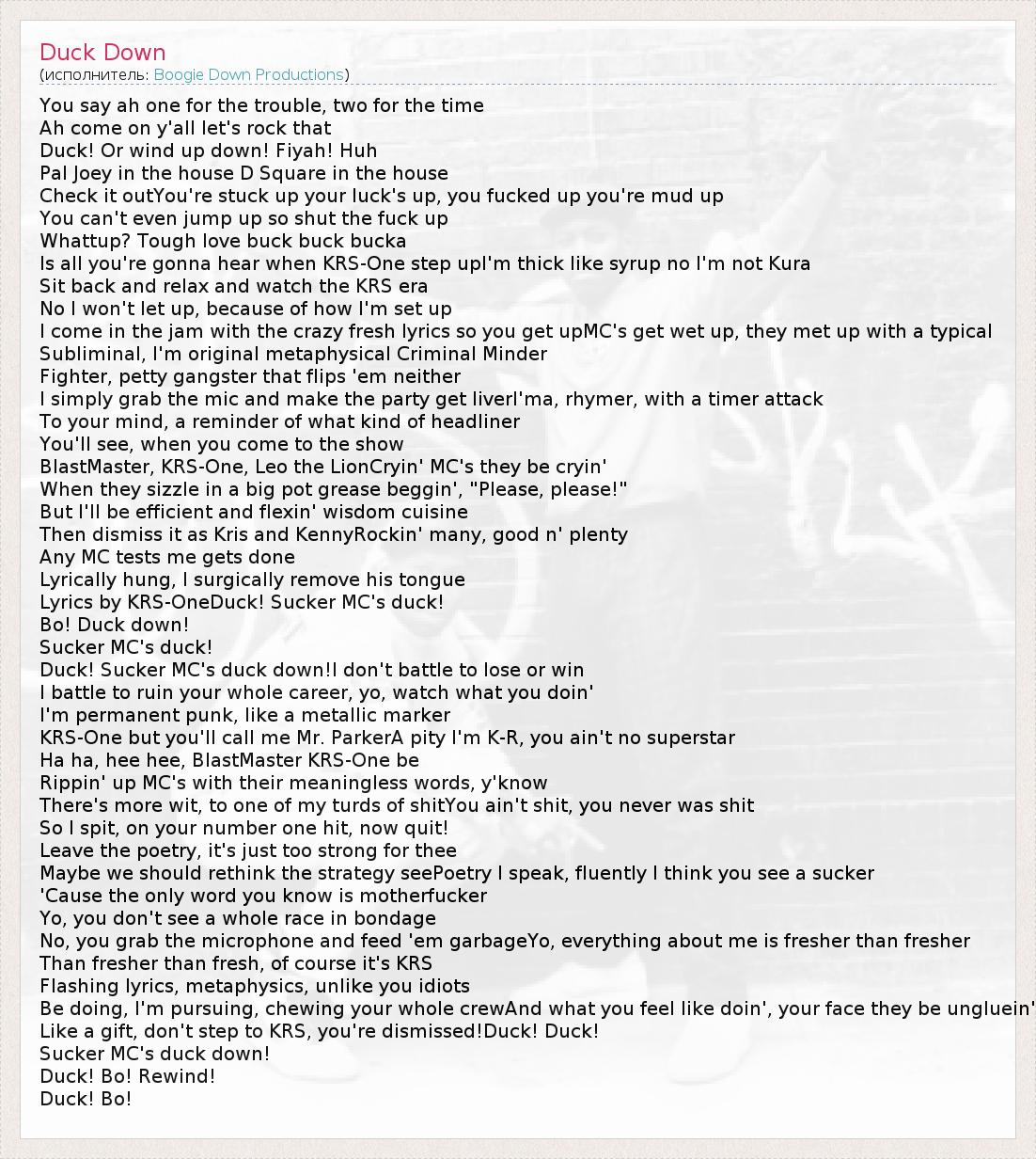 Lyrics by KRS-OneDuck! Sucker MC's duck!