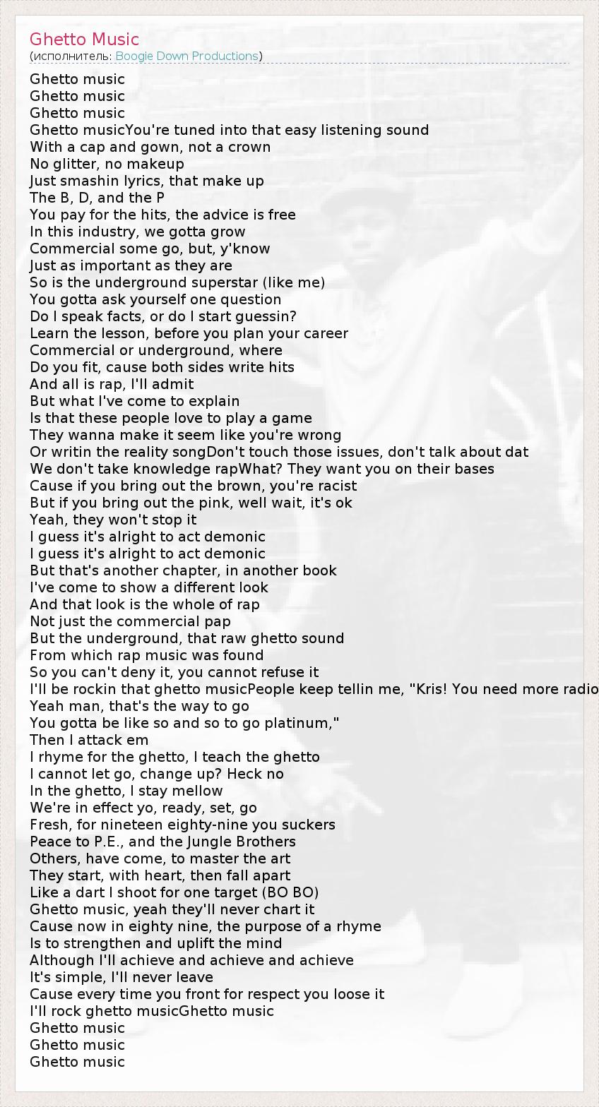 А как ты думаешь, о чем песня "Ghetto Music" ?
