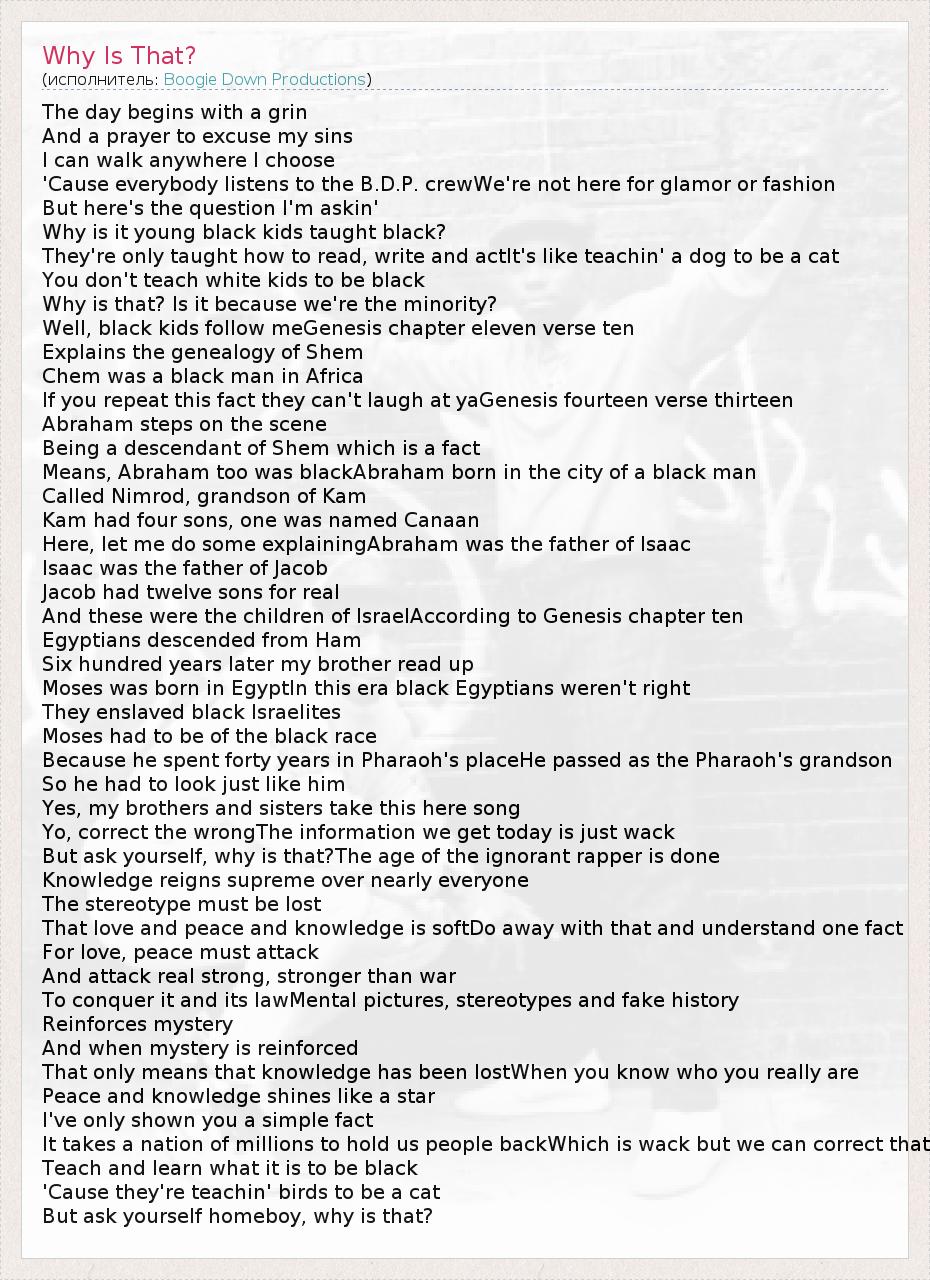 А как ты думаешь, о чем песня "Why Is That?" ?