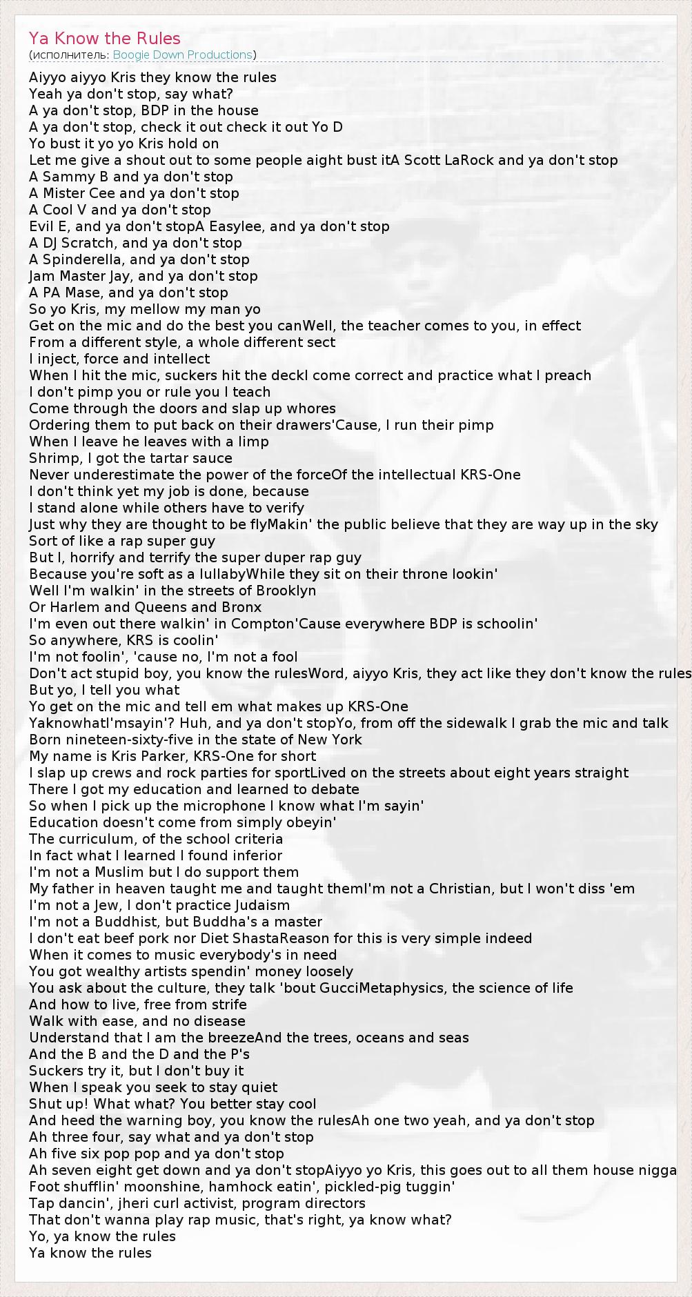 А как ты думаешь, о чем песня "Ya Know the Rules" ?