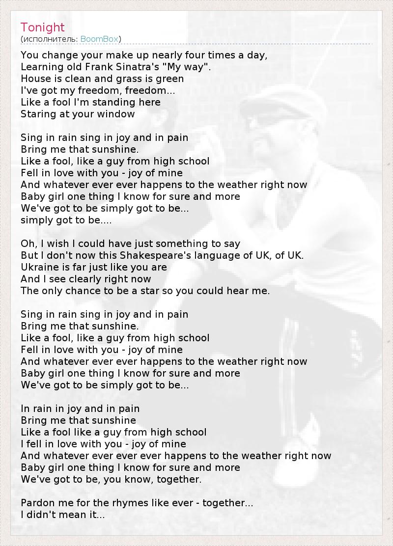А как ты думаешь, о чем песня "Tonight" ?