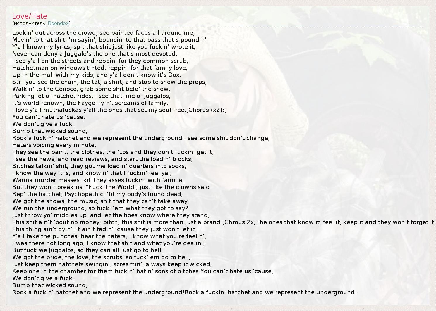 А как ты думаешь, о чем песня "Love/Hate" ?