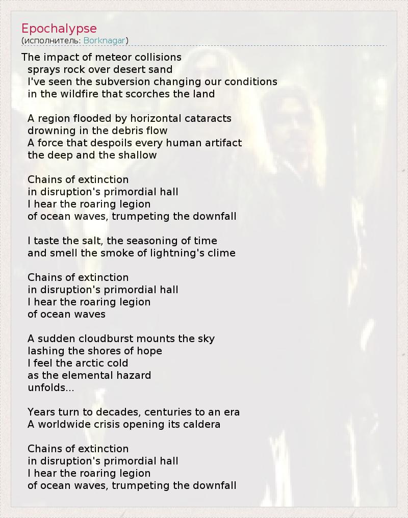 А как ты думаешь, о чем песня "Epochalypse" ?