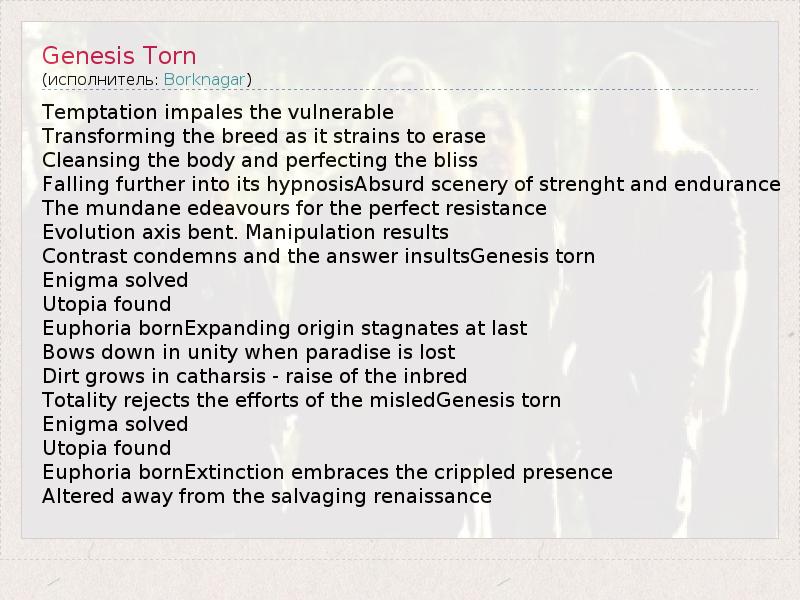 А как ты думаешь, о чем песня "Genesis Torn" ?