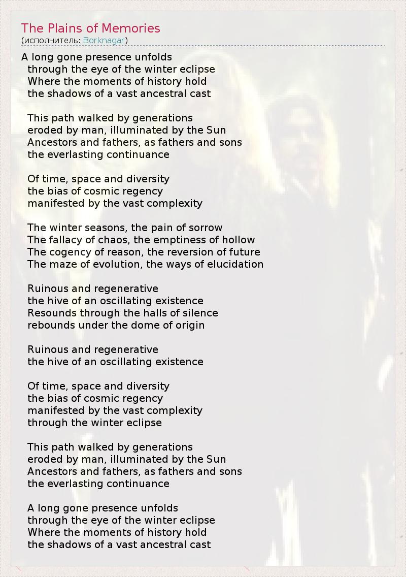 А как ты думаешь, о чем песня "The Plains of Memories" ?