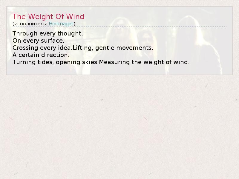А как ты думаешь, о чем песня "The Weight Of Wind" ?
