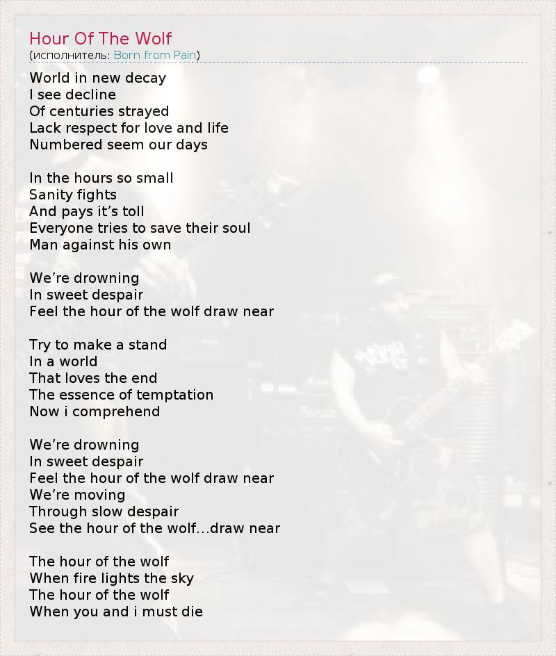 А как ты думаешь, о чем песня "Hour Of The Wolf" ?