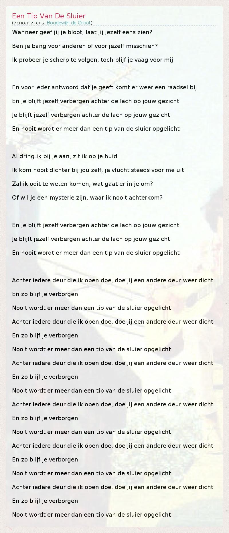 А как ты думаешь, о чем песня "Een Tip Van De Sluier" ?